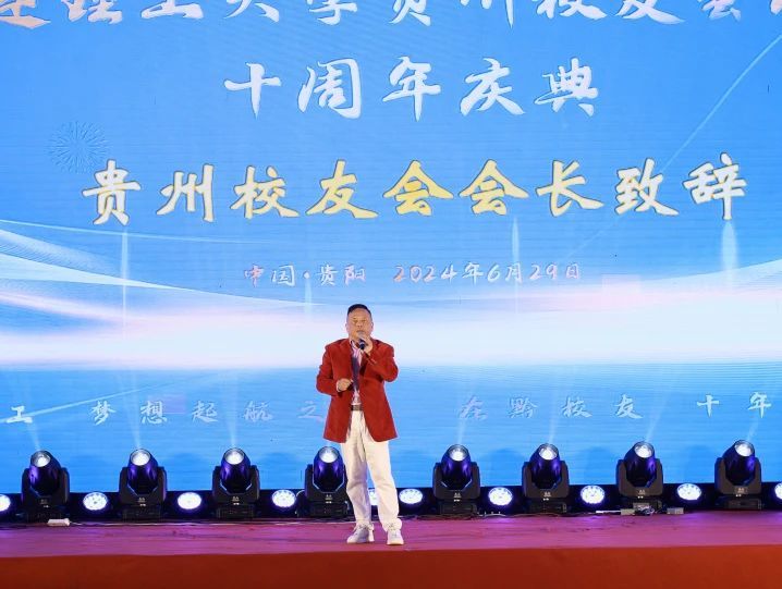 紧接着,贵州校友会第四届理事会理事长刘其斌上台致辞。他深情回顾了校友会十年来的发展历程与取得的成就,分享了校友们在各自领域取得的优异成绩。他表示,贵州校友会将秉承大连理工大学的优良传统与工匠精神,继续努力为校友们搭建更加广阔的平台,共同书写贵州校友会新的篇章。