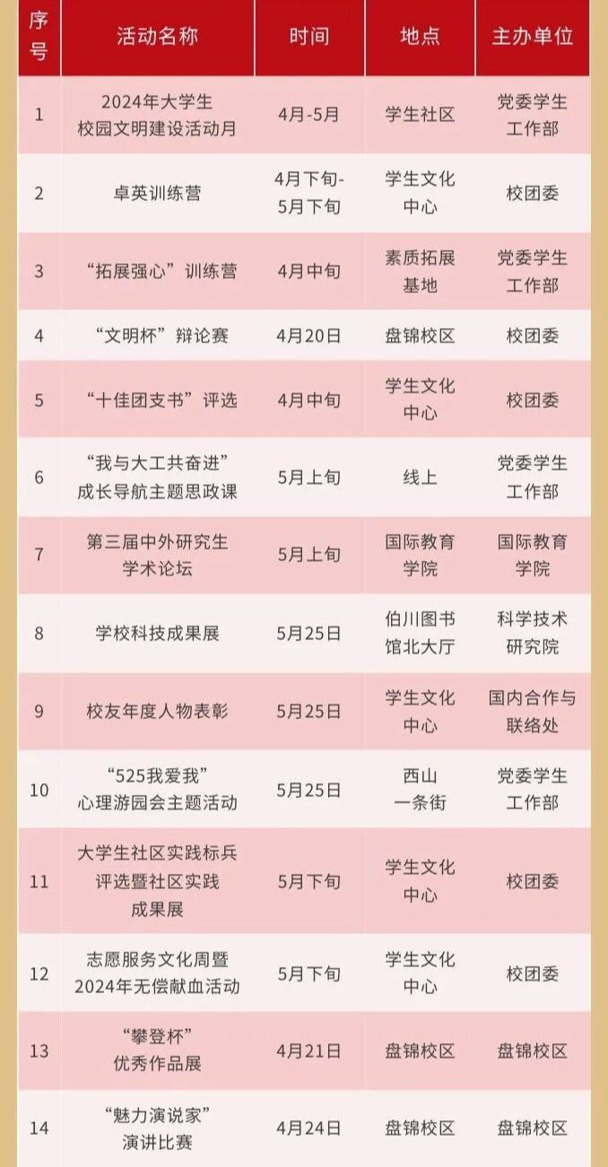 想参加的活动 都记好了吗
