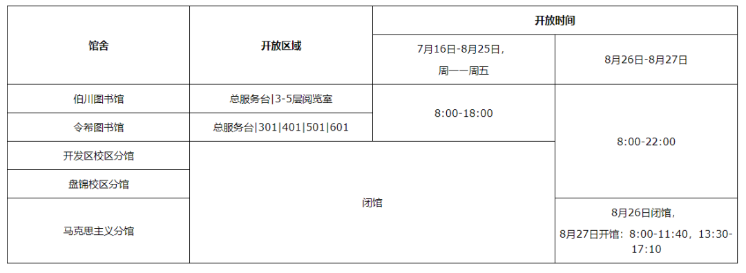 7月17日至7月30日、8月16日至8月26日,校史馆每周二、四、六8:30-12:00;13:00-16:30开放,无需预约,访客凭玉兰卡或身份证入馆;7月31日至8月15日,校史馆闭馆,进行设备维护及展柜清洗。